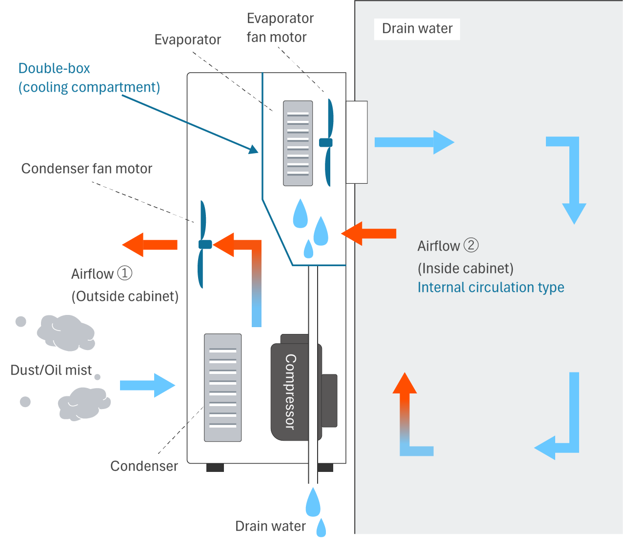 Point 2: There is a sealed double box (cooling room) inside control panel cooling unit that is independent of the outside of the board.