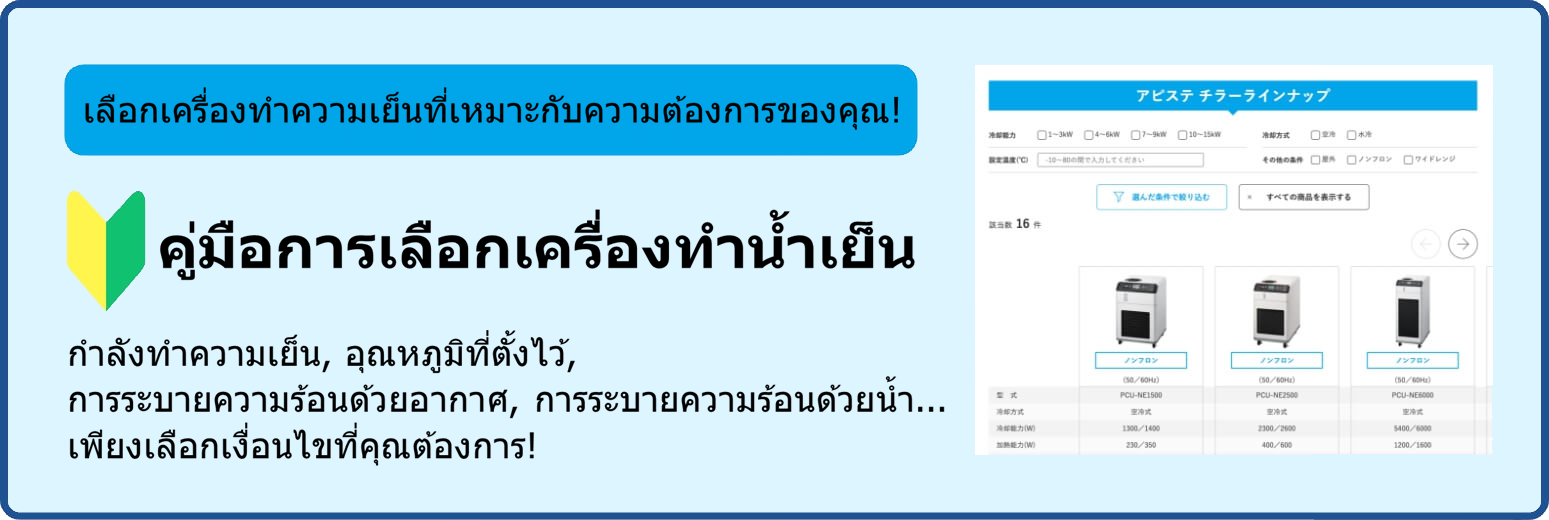 หากคุณได้ตัดสินใจเกี่ยวกับเงื่อนไขของชิลเลอร์ที่คุณต้องการเลือกแล้ว คุณสามารถเลือกชิลเลอร์ที่เหมาะกับวัตถุประสงค์ของคุณได้อย่างง่ายดายจากหน้านี้