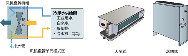 通过将空气吹向循环冷却水的盘管,即可产生冷风。也可以将盘管内的循环水切换为热水,从而产生热风。