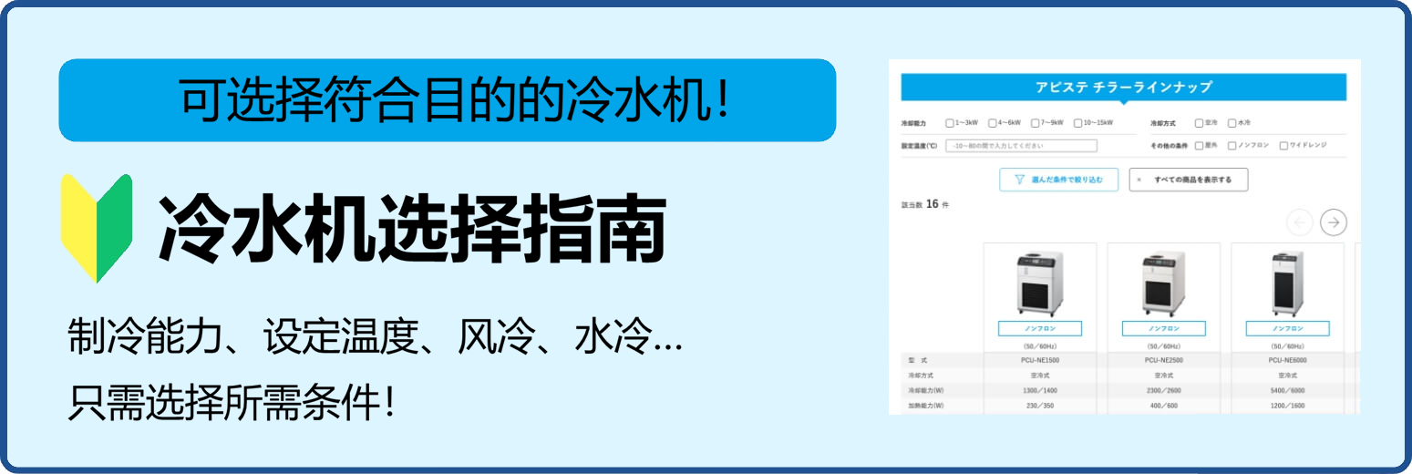 选择适合被冷却设备和工作的冷水机很重要,同时使冷水机的功能、性能和规格与使用条件和环境相匹配也很重要。