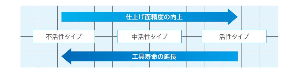 非水溶性油剂大致可分为“油性型”、“惰性极压型”和“活性极压型”。重视刀具寿命的情况下,惰性型比较适合,而提高加工面质量的情况下,活性型比较适合。