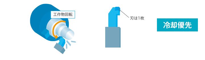 连续切削时,由于切削工具始终与被切削材料接触,摩擦产生的热量容易积聚在刀尖,因此适合使用冷却性优良的油剂。