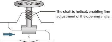 When the valve is fully opened, the valve itself disappears from the flow path, making it an excellent valve in terms of pressure loss. However, when used at an intermediate opening, the valve body vibrates and causes problems, so the flow rate cannot be adjusted and the valve is used at either the fully open or fully closed position.
