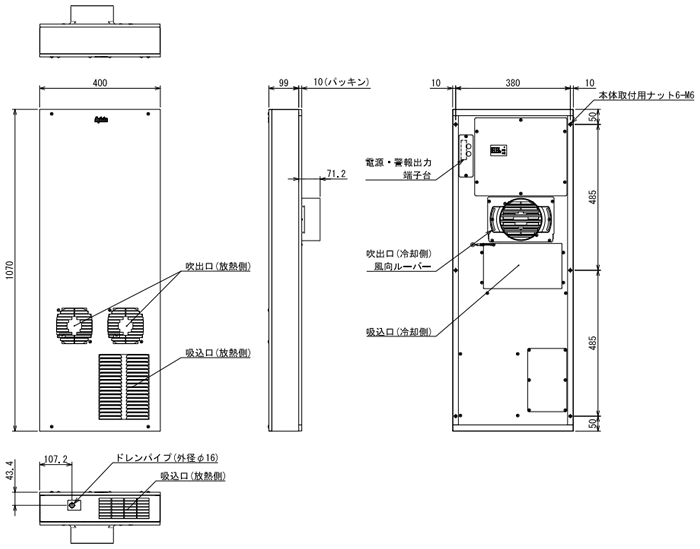 *Dustproof and drip-proof protection grade: (product alone) excluding the inside mounting surface of the board/(internal circulation route) excluding the drain pipe part