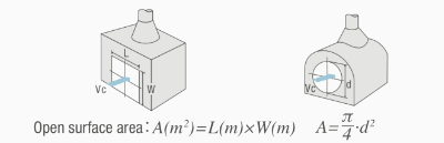 Q=60·A·Vo =60 A Vc Vo: Average wind speed at the opening [m/s] |