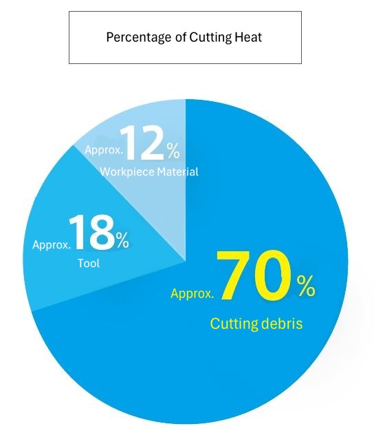 The workpiece also becomes very hot, but the cooling effect prevents expansion and deformation due to heat, maintaining machining stability.