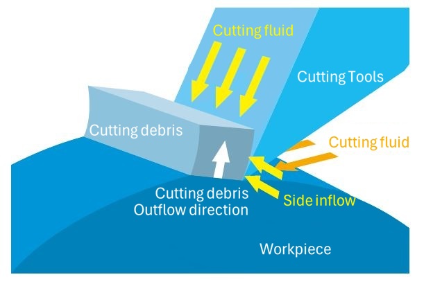 Cutting fluids are able to perform various functions such as lubrication and cooling because they penetrate into the gaps between the tool, workpiece, and chips.