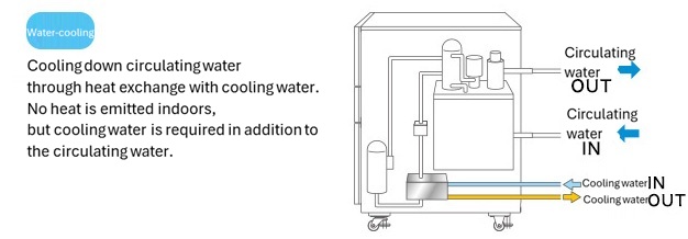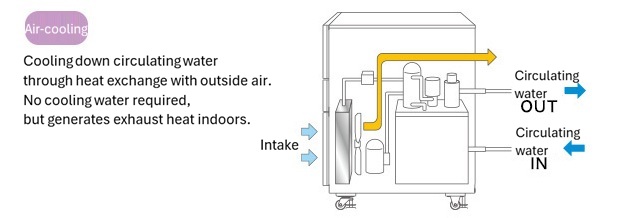 ●Air-cooled [circulating water is cooled by heat exchange with outside air]