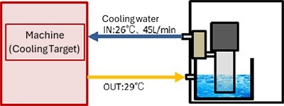 When the cooling water flowing into the equipment is IN: 26°C, OUT: 29°C, and the flow rate is 45 L/min