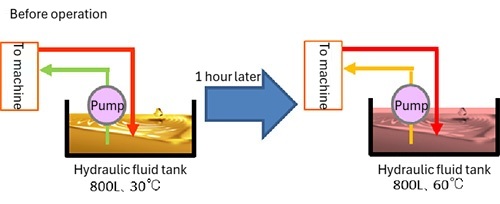 When the temperature of 800 L of hydraulic oil in a tank rises from 30°C to 60°C in 1 hour