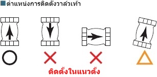 โปรดทราบว่าเนื่องจากโครงสร้างของวาล์วเท้าอาจไม่ทำงานอย่างถูกต้องหากไม่ได้ติดตั้งในทิศทางที่ถูกต้อง ดังนั้นควรติดตั้งให้ตั้งฉากกับถังของเหลว