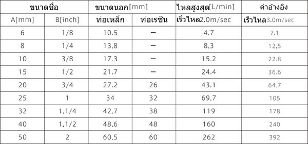 ขั้นแรก ให้ตรวจสอบอัตราการไหลสูงสุดที่กำหนดไว้สำหรับเส้นผ่านศูนย์กลางท่อ หากมีความเสี่ยงที่ของเหลวจะเกินอัตราการไหลสูงสุด ควรเปลี่ยนมาใช้เส้นผ่านศูนย์กลางท่อที่ใหญ่ขึ้นหนึ่งขนาดตามตารางด้านล่างเพื่อความปลอดภัยกว่า