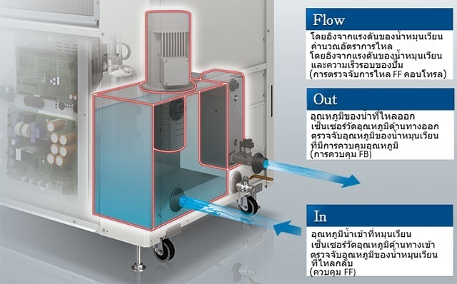 การปรับอัตราการไหลของน้ำหมุนเวียนยังเป็นวิธีที่มีประสิทธิภาพในการประหยัดพลังงานในเครื่องทำความเย็นอีกด้วย
