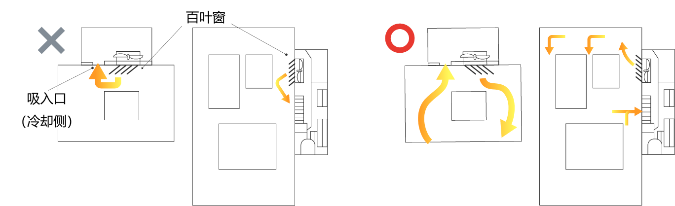 当面板内部的变频器和伺服放大器的废热与空调产生的冷风接触时,面板内部的冷却效率会降低,导致空调运行时间延长。