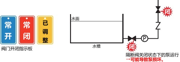 在水槽和油槽等液槽周围,必须根据液面和泵的位置选择阀门,正确安装和使用。相对于液面的泵位置通过目视也可以确认,这次使用配管系统图进行说明。