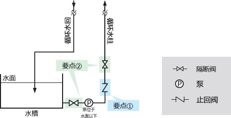 首先,关于泵设置在液面以下时的配管点进行解说。