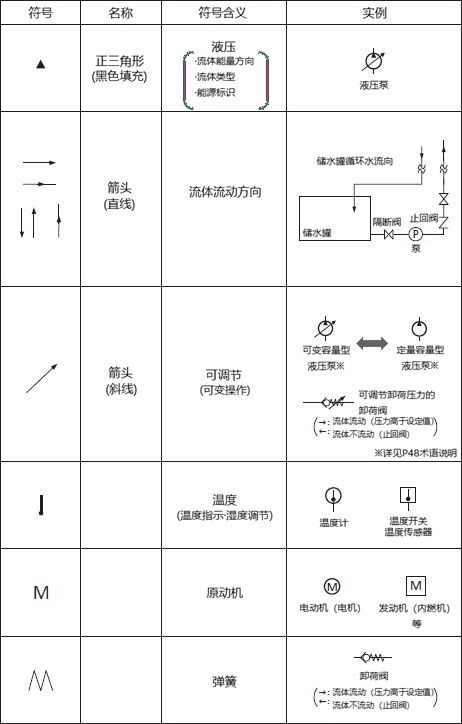 例如,如果液压泵的符号上有斜线箭头,则表示该液压泵为可变容量液压泵。