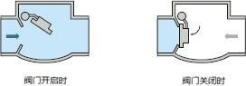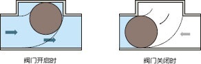 构造:橡胶制的球状阀,在流体的逆流和自重的作用下移动,阀开闭