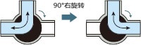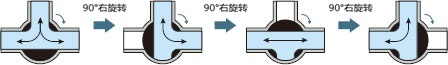 将有T字型流路的球形阀门每90度旋转,产生4种流路的阀门。
