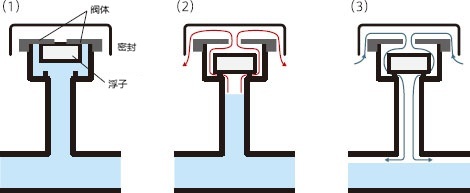 阀内的浮子根据水量上下移动,通过打开和关闭左右阀体之间的间隙,自动进行排气。