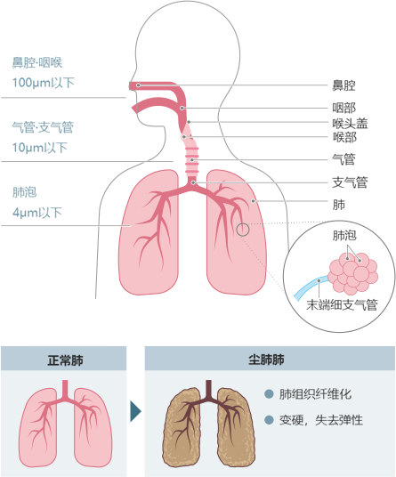 另外,尘肺是由粉尘在肺部堆积引起的肺部疾病的总称,是一旦患病就无法治愈的疾病。
